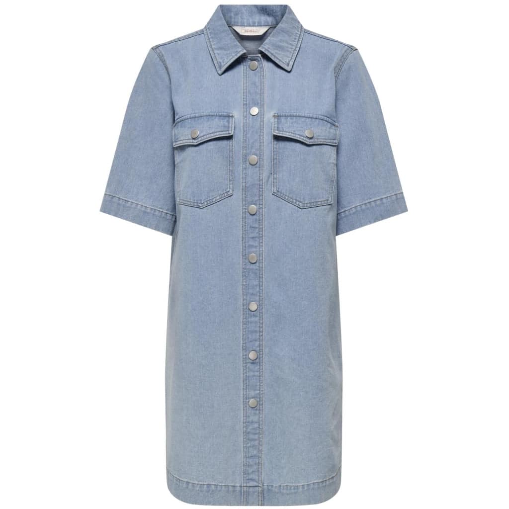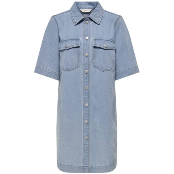 Cool gennemknappet denimkjole med brystlommer fra Only. Kjolen kan også bæres åben. Materiale: 100% Cotton